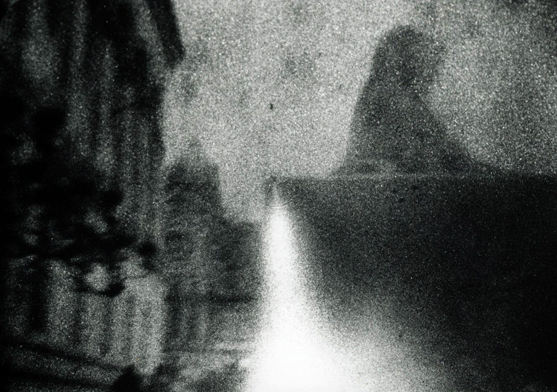 I'm inspired by the spirit photography of the late 1800s. These images fascinate me with their Victorian stiffness interrupted by streams of ectoplasm. Although many of those images were created through darkroom tricks, they're no less phantasmagoric. That era also put into focus the concept of the waking Dream, as articulated by Edgar Allen Poe and Mary Shelley. Their writing, though florid and fantastical, explored the idea of blurring an inner and outer reality, similar to the one I sought to invoke with my image making experiments.